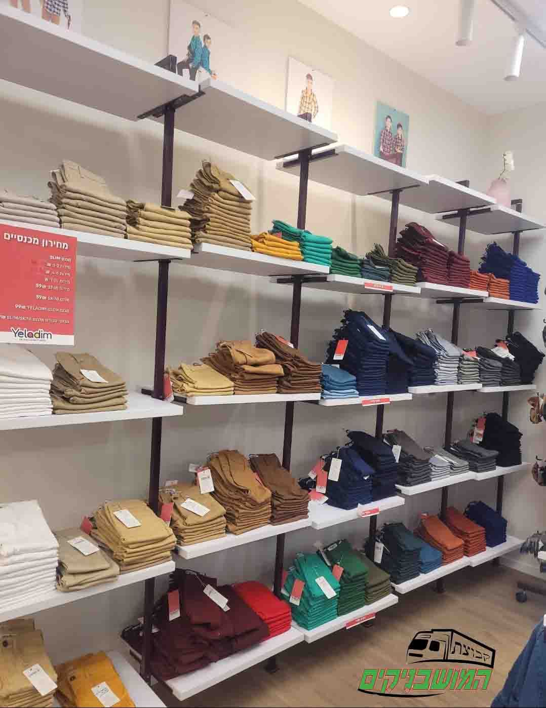 מדפי תצוגה לחנות מגיעים בשילובים רבים וכך נותנים לכם לשלב תליה ומידוף במרווחים שונים.
